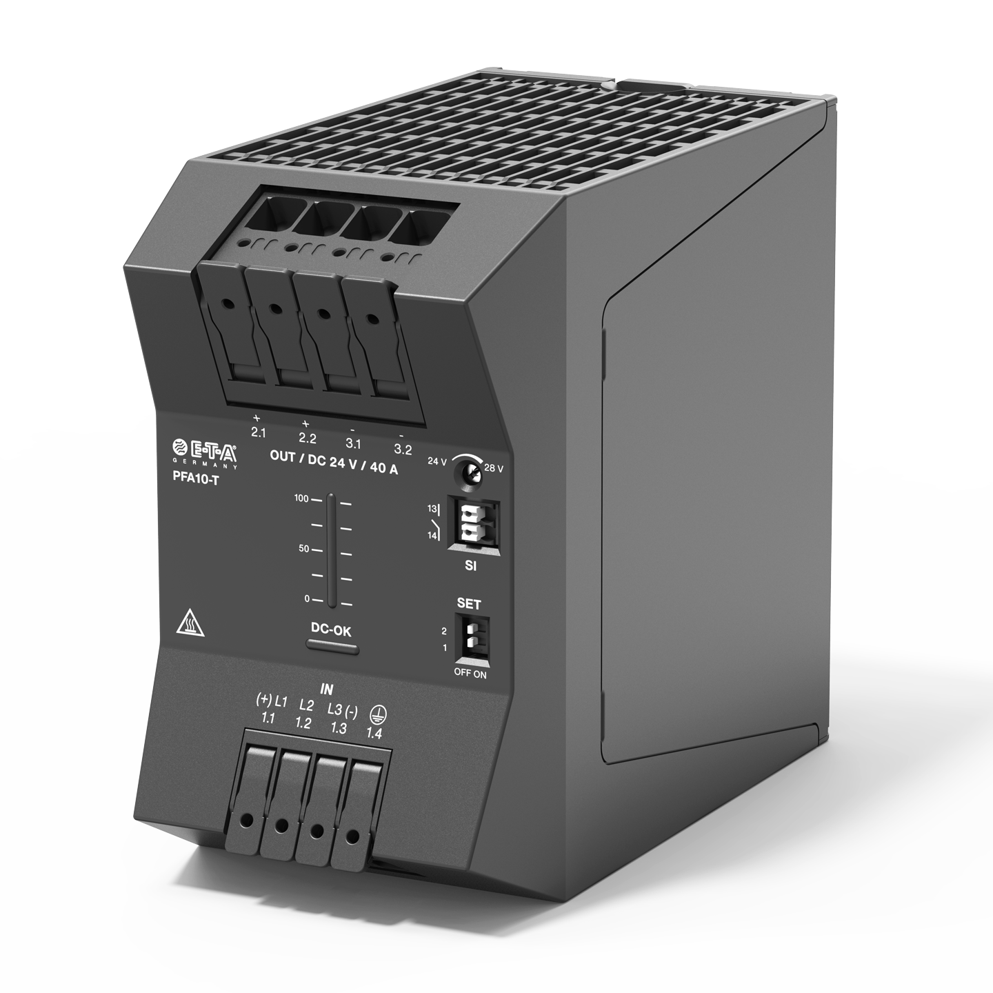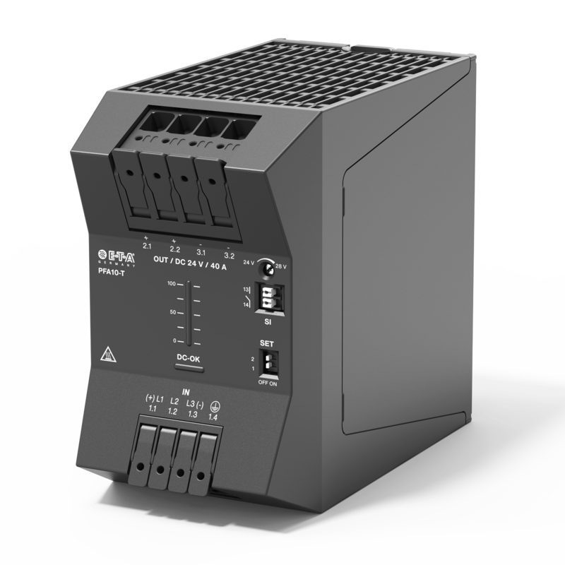 Le bloc d’alimentation primaire à découpage PFA10-T à impulsions est idéal pour une utilisation dans les applications exigeantes d’automatisation et de génie mécanique. Son design compact permet une intégration peu encombrante dans les armoires de commande offrant un espace d’installation restreint. Le boîtier présentant des connexions inclinées à 25° permet une installation sans outil et un remplacement rapide.