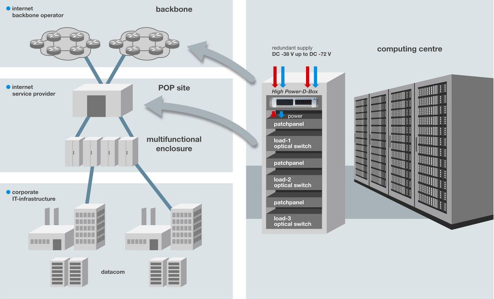 Qu’il s’agisse d’un centre de données, d'un routage IP ou d'une technique de transmission, nos solutions systèmes personnalisées vous permettent d’obtenir la meilleure disponibilité de votre installation et d’éviter efficacement l’endommagement des appareils connectés, par ex. dans la plage de tension de télécommunication DC -38 V à DC -72 V.