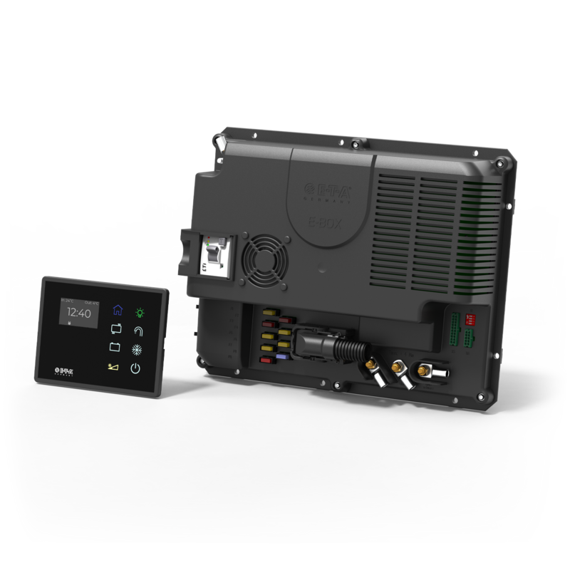 La E-BOX comprend un module de distribution d’énergie analogique avec fonction de charge et fonction booster pour l’intégralité du système électrique embarqué des camping-cars et des vans. Elle associe une unité de charge, un booster de charge, une distribution 12 V DC/230 V AC et une unité de protection. La E-BOX surveille de manière fiable et protège toutes les charges connectées contre les dommages causés par la surcharge ou les courts-circuits.